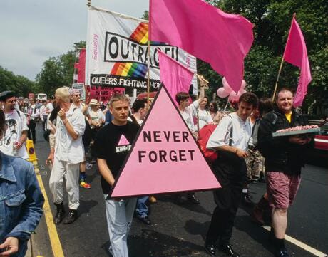 Sébastien talks us through how a symbol of persecution, created by the Nazis to shame people classified as homosexual during the National Socialist regime and found on the chest of men condemned to death in concentration camps, developed into a symbol of survival and resistance around the world in the late twentieth century. We also hear about groups who were excluded from using the symbol and those who refused to use the pink triangle under any circumstances. Furthermore Sébastien tells us how the ‘symbolic’ repositioning of the triangle from the Nazi version pointing down to the optimistic Act-Up version point up, may have been no more than a graphic design oversight.